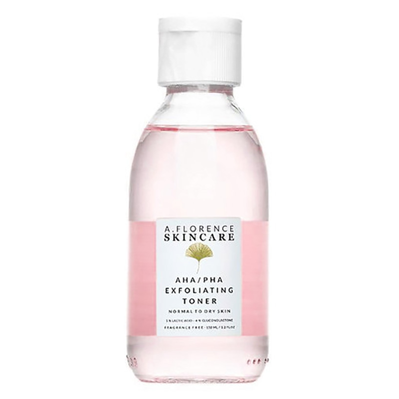 A.Florence Skincare AHA/PHA Exfoliating Toner to łagodnie złuszczający tonik oparty na kwasie mlekowym (AHA) i glukonolaktonie (PHA), co czyni go skutecznym, ale jednocześnie delikatnym wyborem dla skóry wrażliwej.