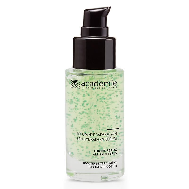 24h Hydraderm Serum - Nawilżające serum 24h. Skoncentrowane serum zapewnia skórze optymalny poziom nawilżenia oraz nadaje jej zdrowy, świetlisty wygląd. Woda jabłkowa, będąca podstawą produktu doskonale nawilża i wygładza skórę. Wykorzystane w składzie perły kwasu hialuronowego wiążą wodę w naskórku zapobiegając odwodnieniu i przesuszeniu skóry. Ekstrakty roślinne oraz naturalne składniki aktywne gwarantują skórze zdrowy blask i jedwabistą gładkość. Rewelacyjna regeneracja skóry suchej i zmęczonej!