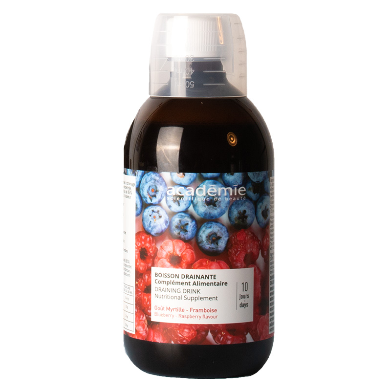 Academie Boisson Drainante nie zawiera cukru. Ma przyjemny smak borówki i maliny oraz wygodną w użyciu formułę – wystarczy rozcieńczyć wskazaną porcję w wodzie. Skład został wzbogacony o skoncentrowane soki owocowe oraz naturalny słodzik – glikozydy stewiolowe.