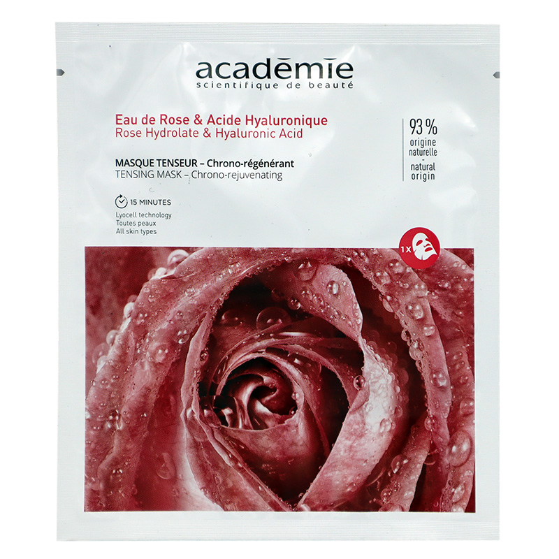 Maska nasączona silnie skoncentrowanym serum, wykonana z włókien celulozowych. Produkt zawiera aż 93% surowców pochodzenia naturalnego. Swój skład opiera na działaniu hydrolatu różanego o właściwościach przeciwstarzeniowych i rewitalizujących skórę. Ponadto jest bogata w kwas hialuronowy znany ze swoich właściwości nawilżających, wygładzających zmarszczki i ujędrniających skórę.