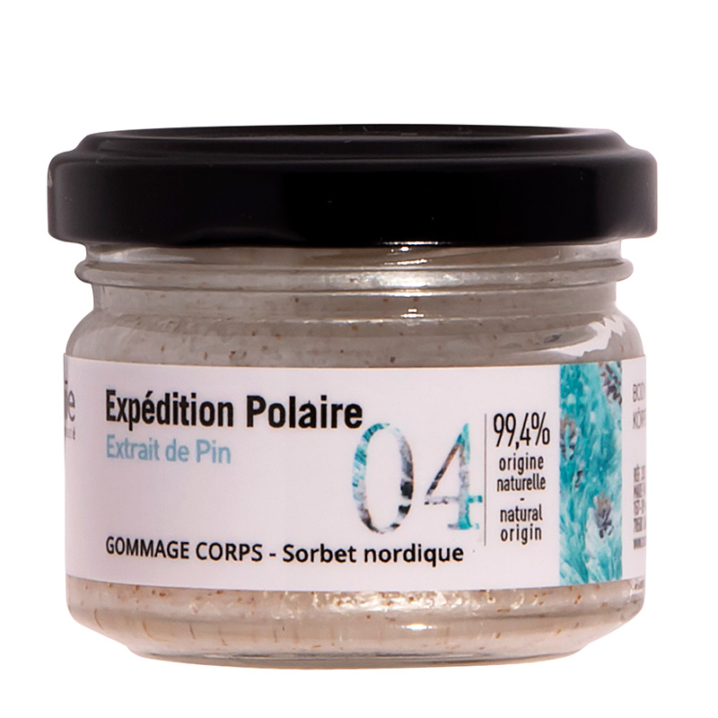 W składzie kosmetyku zawarto ekstrakt z sosny, który wspomaga naturalne procesy regeneracyjne skóry. Obecność soli morskiej zapewnia delikatne złuszczanie martwych komórek naskórka, a zawartość szyszek sosny wzmacnia ten efekt, jednocześnie topiąc się na skórze i pozostawiając na niej ochronny film. Recepturę wzbogacono witaminą E, która wykazuje działanie antyoksydacyjne, przeciwdziałając wpływowi wolnych rodników tlenowych.