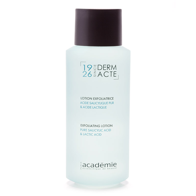 Lotion Exfoliatrice - Złuszczający tonik dla skóry trądzikowej, kwas mlekowy i salicylowy. Działa w dwóch kierunkach: skutecznie wygładza naskórek, a także cofa oznaki czasu, takie jak zmarszczki, linie, utrata jędrności. Reguluje wydzielanie sebum i zapobiega powstawaniu zmian zapalnych. Zmniejsza łojotok, liczbę mikro-zaskórników oraz liczbę aktywnych gruczołów łojowych.