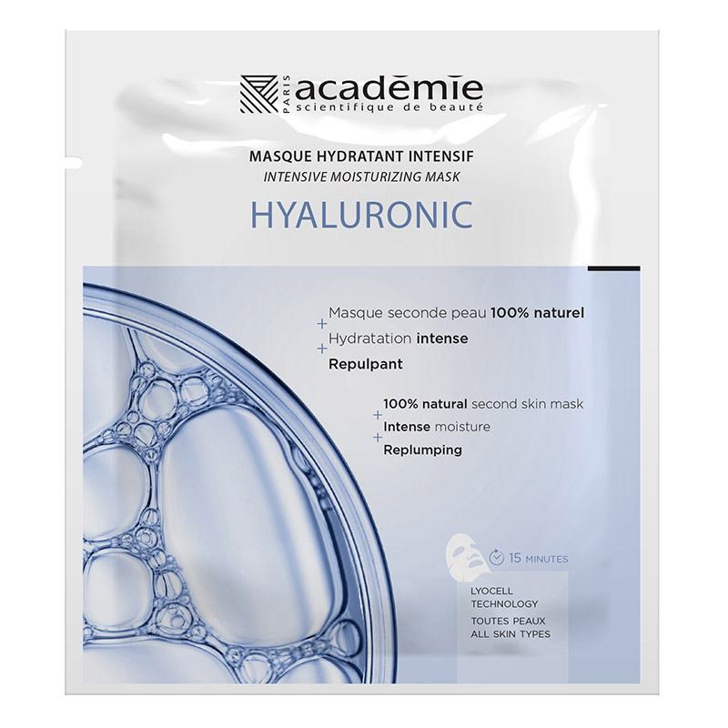 Masque Hydratant Intensif - Maska hialuronowa intensywnie nawilżająca. Intensywne serum regenerujące w formie maseczki do twarzy. Dzięki zawartości kwasu hialuronowego skóra jest głęboko nawilżona oraz wygładzona, natomiast aloes łagodzi podrażnienia i koi skórę. Kompleks nawilżający Academie poprawia kondycję skóry oraz niweluje przesuszenia. Struktura maski z włókien celulozowych pozwala na dostarczenie składników aktywnych bezpośrednio do komórek. Efekt- nawilżona i gładka skóra!