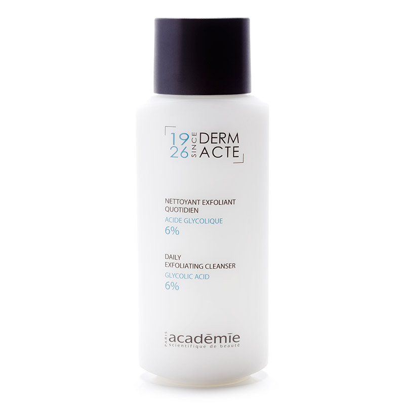 Nettoyant Exfoliant Quotidien-Acide Glycolique 6% - Emulsja oczyszczająco-złuszczająca z kwasem glikolowym 6%. Intensywna kuracja złuszczająca, zawierająca kwas glikolowy o niskim stężeniu 6%. Intensywnie oczyszcza, odświeża i wygładza nierówności skóry. Pobudza naskórek do regeneracji. Po przeprowadzeniu kuracji 3 bądź 6-miesięcznej skóra jest perfekcyjnie czysta, gładka oraz promienna. Zawarty w nim bisabolol oraz alantoina koją i łagodzą podrażnienia.