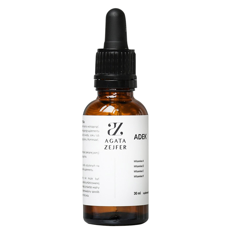 Produkt ADEK ma neutralny smak i płynną formę, co sprawia, że jest wygodny w stosowaniu.