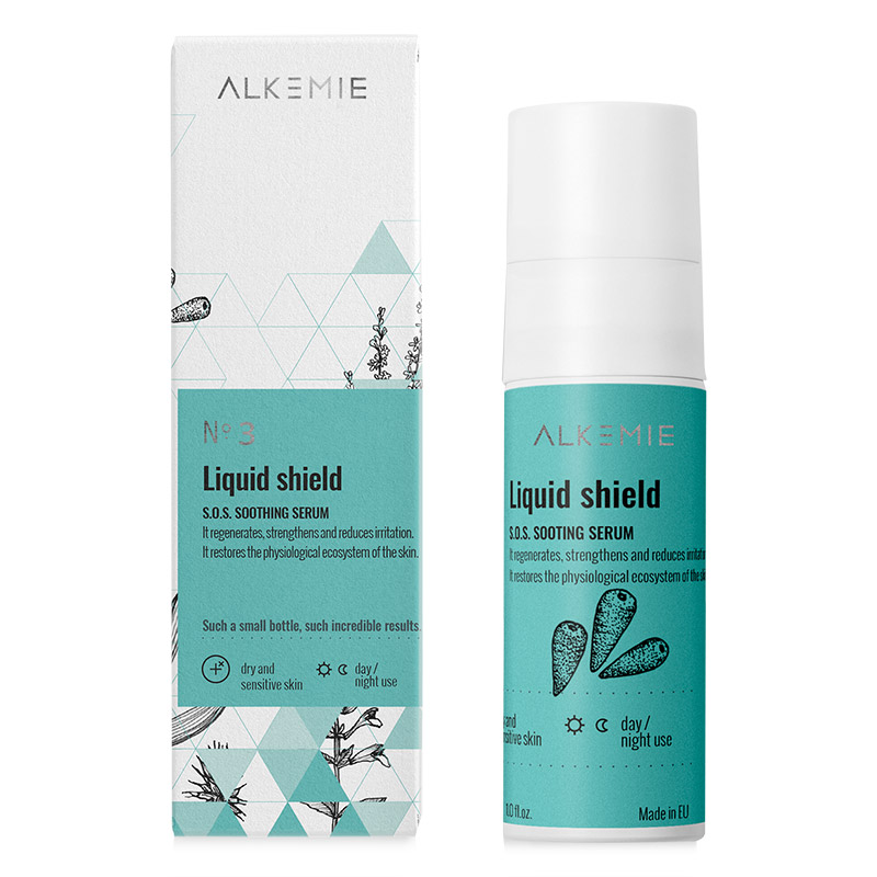 Liquid Shield S.O.S - Serum wyciszające SOS przeznaczone do skóry bardzo wrażliwej, atopowej, przesuszonej. Silnie regeneruje oraz łagodzi wszelkie podrażnienia. Wysoka dawka specjalnie dobranych składników aktywnych stanowi doskonałą terapię nawilżającą, kojącą oraz przynoszącą natychmiastową ulgę. Serum posiada kompleks prebiotyczno-probiotyczny, który wspomaga rozwój dobrej mikroflory skóry, co zapobiega przed namnażaniem patogenów. Wzmacnia jej fizjologiczną barierę ochronną oraz zwiększa odporność na czynniki drażniące. Dochodzi do redukcji stanów zapalnych oraz niwelowania świądu, pieczenia, ściągnięcia. Produkt dzięki temu doskonale sprawdzi się po inwazyjnych zabiegach dermokosmetycznych, które naruszają barierę ochronną naskórka i powodują podrażnienia. Serum tworzy na powierzchni skóry barierę ochronną przed zanieczyszczeniami środowiskowymi. Skóra po użyciu staje się niebywale miękka, gładka i nawilżona. Dochodzi do poprawy syntezy kolagenu i elastyny, co wpływa na zwiększenie jędrności i elastyczności skóry. Produkt zmniejsza również widoczność przebarwień i blizn. W składzie produktu znajdziemy: