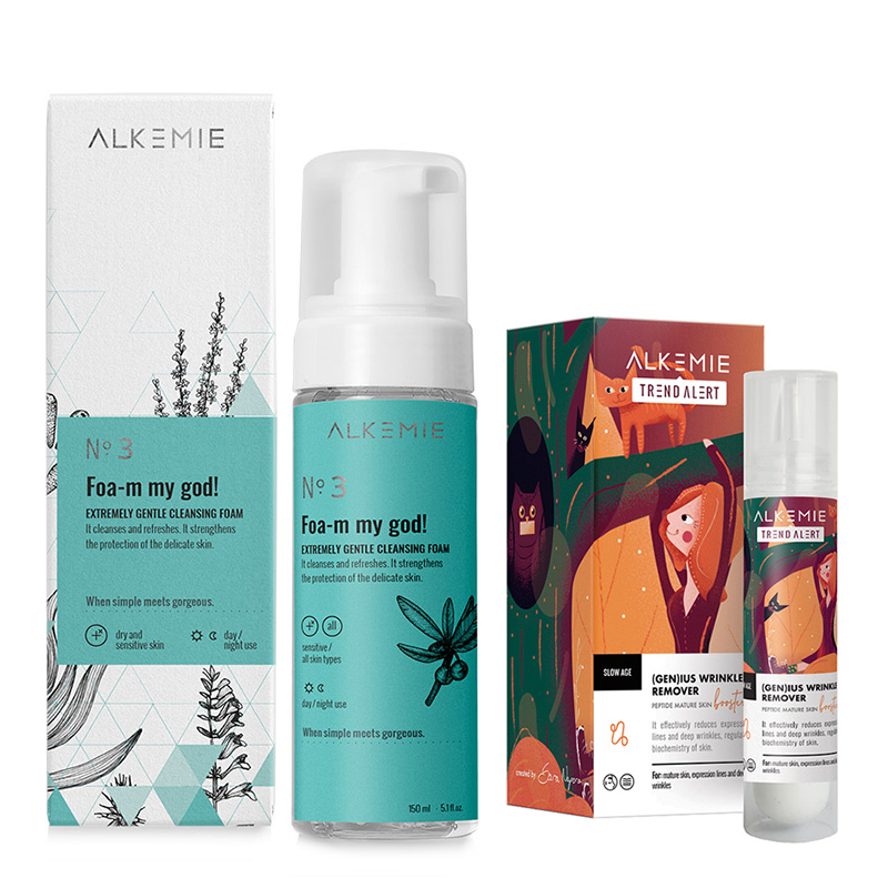 Genius Wrinkle Remover Peptydowy booster do cery dojrzałejBooster aplikować na oczyszczoną skórę twarzy, szyi i dekoltu (również okolice oczu). Delikatnie wmasować i pozostawić do całkowitego wchłonięcia, a następnie nałożyć krem. Działanie boostera idealnie uzupełniają: krem Long live the skin!, oraz cała linia Alkmie Anti-Age.