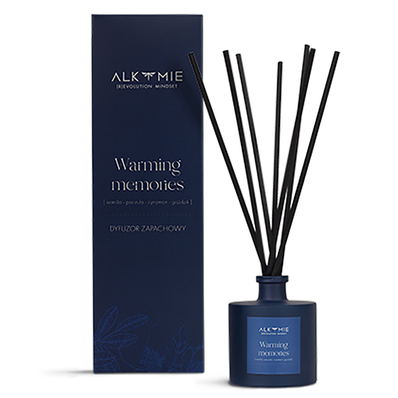 Dyfuzor Warming Memories to rozgrzewająca kompozycja olejków eterycznych zamkniętych w eleganckim, szklanym flakonie, który sprawdzi się jako dekoracja każdego wnętrza. Dyfuzor Alkmie Warming Memories to otulający zapach wanilii, cynamonu i goździka, przełamany cytrusową świeżością pomarańczy i bergamotki. Prawdziwą mocą dyfuzora są jego patyczki zanurzone w kompozycji zapachowej, które stopniowo uwalniają przepiękny aromat.