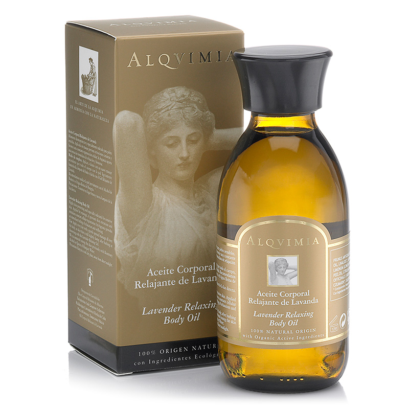 Składowa Alqvimia Lavender Relaxing Body Oil Olej do ciała, relaksujący, lawendowy występuje w zestawie Miłości, Wieczne Piękno i Medytacja w zmienionej objętości.
