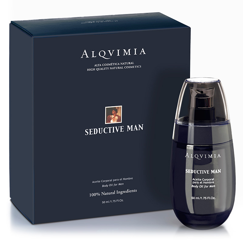 Składowa Alqvimia Seductive Man Olej do ciała, Uwodzicielski Mężczyzna występuje w zestawie Miłości, Wieczne Piękno i Medytacja w zmienionej objętości.