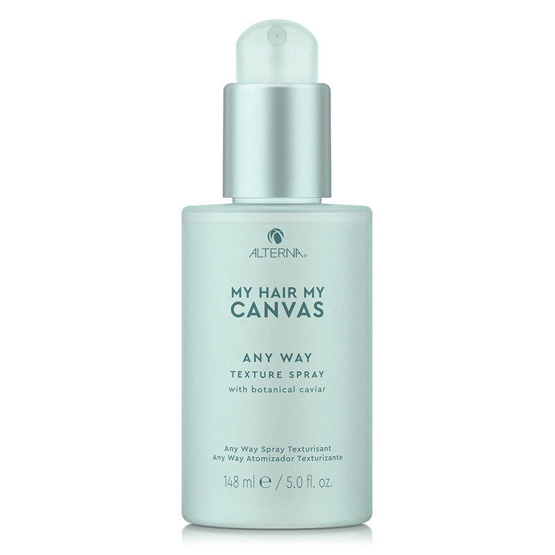 Alterna My Hair My Canvas Any Way Texture Spray - Spray nadający teksturę. Spray utrwala stylizację włosów oraz nadaje im teksturę. Posiada delikatny zapach rokitnika i mandarynki. Świetnie sprawdzi się do podkreślenia luźnych fryzur - burzy loków, luźnego koka lub naturalnych, swobodnych fal. Zapewnia ochronę przed wilgocią i puszeniem do 24 godzin. W składzie znajdziemy biały węgiel drzewny, który ma właściwości pochłaniające nadmierne ilości olejów, dzięki czemu fryzura pozostanie świeża na dłużej. Cukier kokosowy nada włosom połysku oraz tekstury, dzięki której mamy możliwość kontrolować stylizację nawet bez suszenia włosów. Ekstrakt z bambusa nadaje włosom sprężystość i wygładzenie, przez co włosy wyglądają zdrowiej.