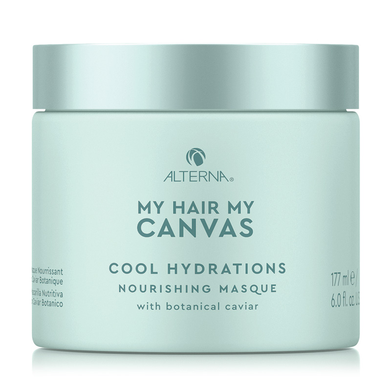 Canvas Cool Hydrations Masque - Maska nawilżająca. Intensywna maska przeznaczona do pielęgnacji włosów zniszczonych, suchych, łamliwych, puszących się i skłonnych do elektryzowania. Za związanie wilgoci i przywrócenie odpowiedniego poziomu nawilżenia odpowiada zastosowany w masce wegański kawior botaniczny. W połączeniu z ekstraktem z lili wodnej odżywia i nabłyszcza on włosy, zwiększając ich elastyczność i podatność na układanie. Z kolei ekstrakty z bogatych w antyoksydanty roślin pustynnych, takich jak Quandong, Desert Lime i Wattle Seed chronią przed szkodliwym działaniem czynników środowiskowych. Po użyciu maski poprawie ulega ogólna kondycja i wygląd fryzury. Włosy stają się miękkie i gładkie, zminimalizowana zostaje także tendencja do puszenia się i elektryzowania.