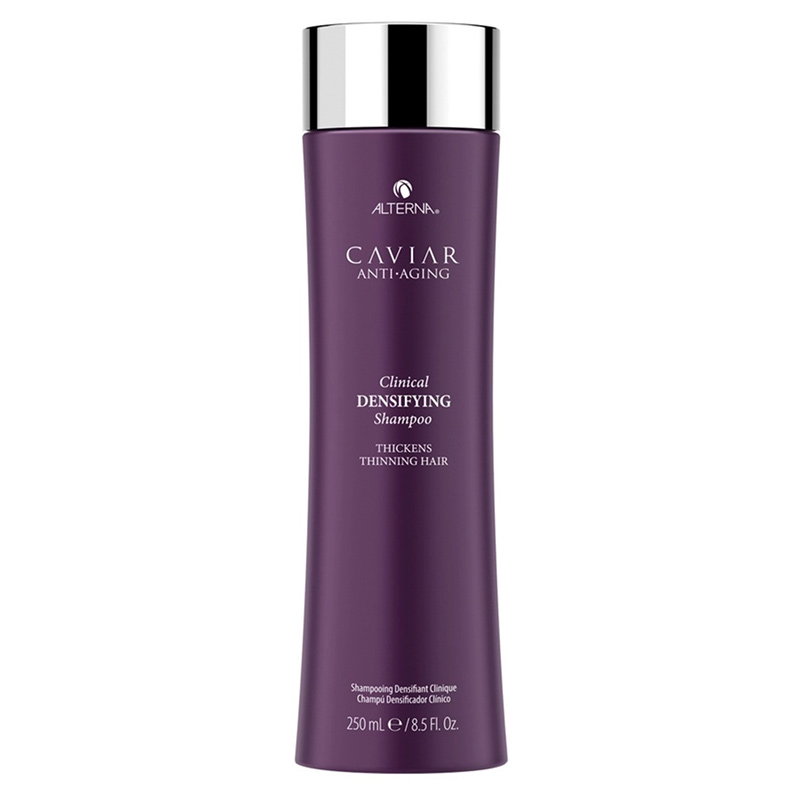Caviar Clinical Daily Densifying Shampoo - Szampon zapobiegający wypadaniu włosów. Szampon przeznaczony do codziennego użytku, posiada działanie jako kuracja lecznicza, wzmacniająca i odżywiająca włosy, zapobiegając przy tym nadmiernemu wypadaniu. Posiada trójfazową formułę, która zmniejsza ilość wypadania i przerzedzania włosów, wzmacnia i pogrubia ich strukturę oraz nadaje objętości i zdrowego wyglądu. Szampon ma także właściwości oczyszczające nie tylko włosy, a także skórę głowy, bez podrażnienia i obciążania.