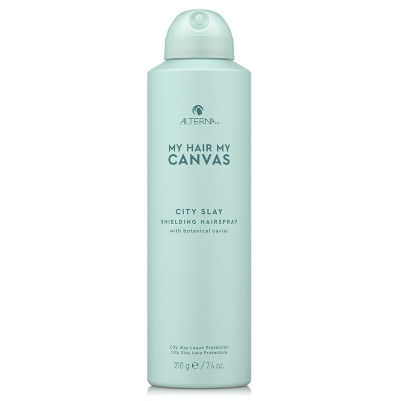 My Hair My Canvas City Slay Shielding Hairspray - Elastyczny lakier do włosów. Wegański, elastyczny lakier do każdego rodzaju włosów, bezpieczny także dla włosów farbowanych. Przedłuża trwałość stylizacji a także chroni włosy przed zanieczyszczeniami z zewnątrz. Zapewnia skuteczną termoochronę do 232 stopni Celsujsza. Gwarantuje doskonałe utrwalenie fryzury na cały dzień. W składzie zawiera biały węgiel drzewny, wysokiej jakości proszek z węgla drzewnego dębowego ubame - jego zadaniem jest wchłanianie nadmiernej ilości olejów oraz toksyn. Formuła lakieru jest szybkoschnąca, nie skleja włosów, a także posiada delikatny zapach jaśminu i bergamotki. Włosy po użyciu produktu nie są sztywne, lakier daje efekt elastycznej fryzury.
