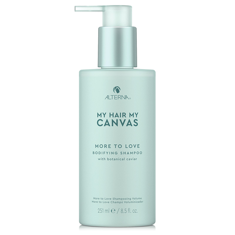 My Hair My Canvas More To Love Bodifying Shampoo - Szampon zwiększający objętość. Wegański szampon z wyciągiem z bambusa zwiększający objętość włosów. Nadaje im miękkiej tekstury, elastyczności. Sprawdzi się do każdego typu włosów, bezpieczny także dla włosów farbowanych. Skład wzbogacony jest cukrem kokosowym, który nabłyszcza włosy, nadaje im zdrowego połysku. Naturalny wyciąg z bambusa wspomaga uniesienie włosów u nasady, dzięki czemu uzyskują one większą objętość. Delikatna formuła nie przesusza włosów. Szampon jest wzbogacony o piękny, delikatny zapach rokitnika i mandarynki. Produkt nie zawiera parabenów, ftalanów, siarczanowych środków powierzchniowo czynnych czy syntetycznych barwników. Opakowanie zostało wykonane w 50% z odzyskiwanego plastiku.