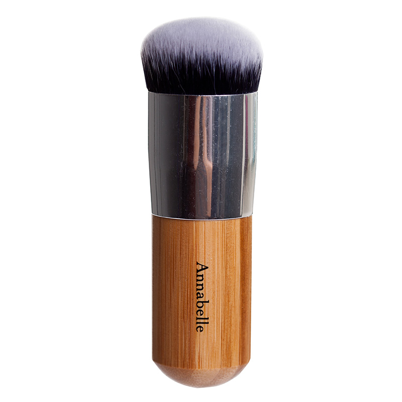 Short Top - Pędzel do podkładu mineralnego. Wygodny pędzel do aplikacji podkładu mineralnego to niezastąpiony produkt w każdej kosmetyczce. Wyjątkowy kształt pędzla pozwala na uzyskanie pełnego krycia już od pierwszej warstwy. Ergonomiczna, szeroka rączka z drewna bambusowego pozwala na precyzyjną i wygodną aplikację produktu. Szeroka, metalowa skuwka nie tylko nadaje pędzlowi elegancji, ale również zapobiega wypadaniu włosia. Rodzaj włosia jest kluczowy w kwestii siły krycia produktu. Wykorzystane w pędzlach Annabelle Minerals syntetyczne włosie jest odpowiednie nawet dla wrażliwej skóry. Kosmetyk lepiej przywiera do włosia, dzięki czemu nie osypuje się i nie pyli. Skóra jest doskonale ujednolicona, a podkład zapewnia perfekcyjne krycie już po aplikacji jednej warstwy produktu.
