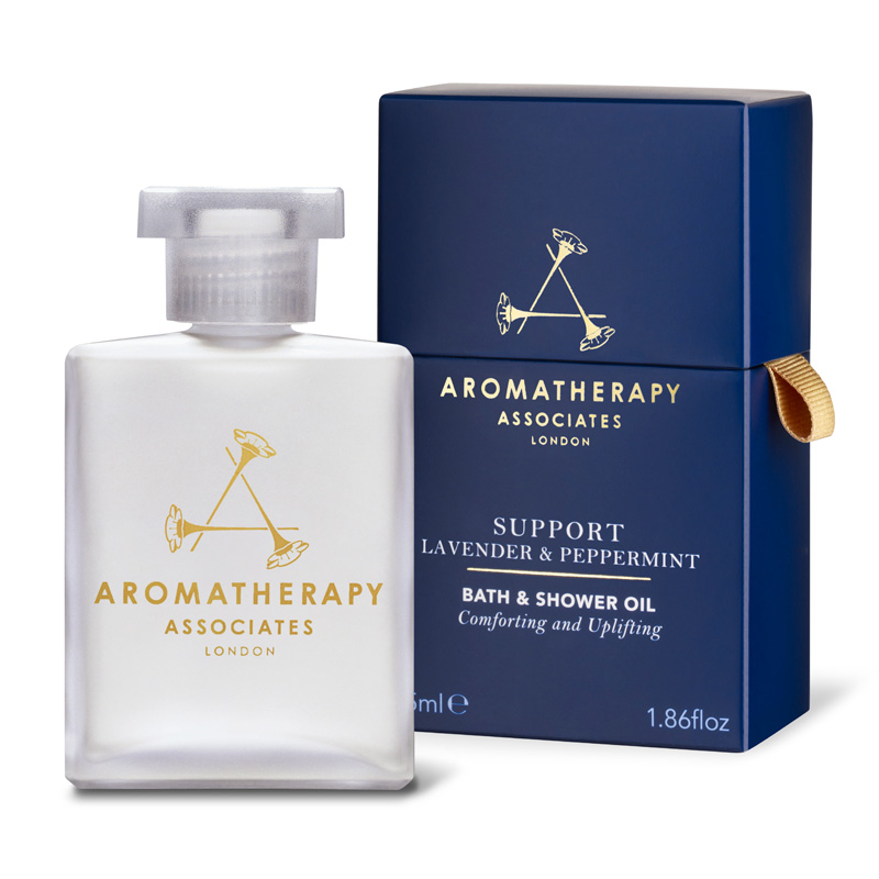 Składowa Aromatherapy Associates Support Lavender & Peppermint Bath & Shower Oil Lawendowo-miętowy olejek do kąpieli występuje w zestawie Discovery Bath & Shower Oils Collection w zmienionej objętości.