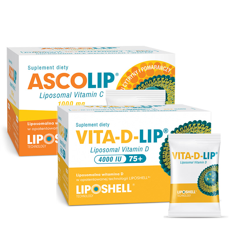 Vita-D-LIP 4000 IU 75+ Liposomalna witamina DSuplement diety przeznaczony dla dorosłych powyżej 75. roku życia, zawierający witaminę D w liposomalnej formie LIPOSHELL®.