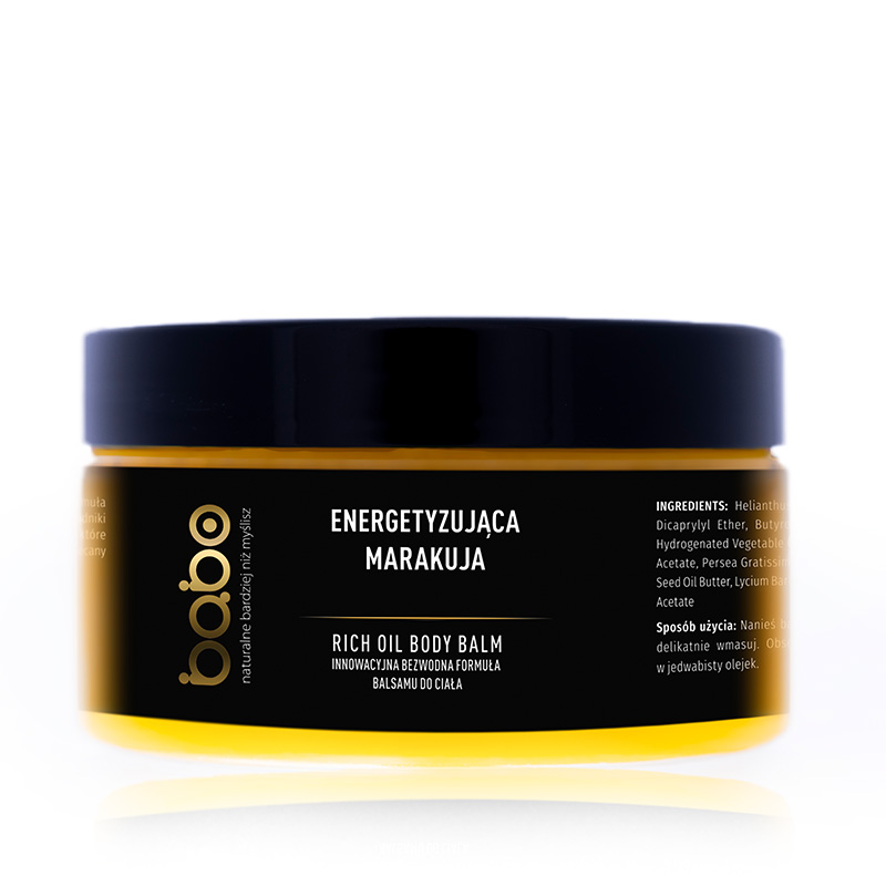 Energetyczny balsam odpowiedni do wzbogacenia codziennej pielęgnacji każdego rodzaju skóry ciała. Kosmetyk doskonale sprawdzi się dla cery suchej i pozbawionej blasku. Posiada przepiękny zapach owoców marakui, który pobudza zmysły i utrzymuje się na ciele przez długi czas.