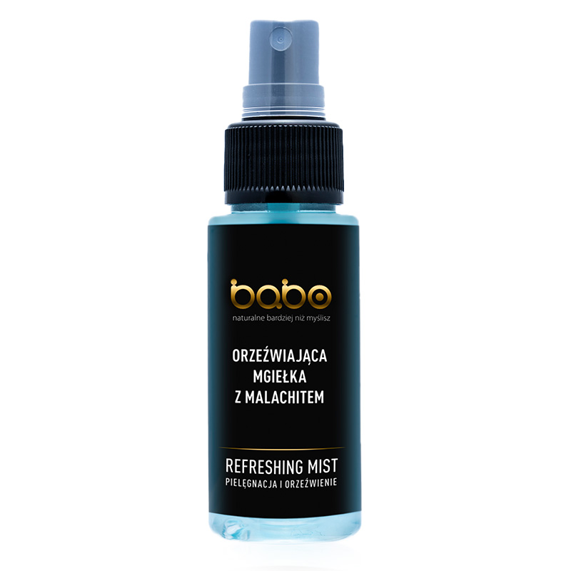 Orzeźwiająca mgiełka Babo posiada świeży zapach, który zapewnia uczucie odświeżenia. Po zastosowaniu skóra jest nawilżona i ukojona.