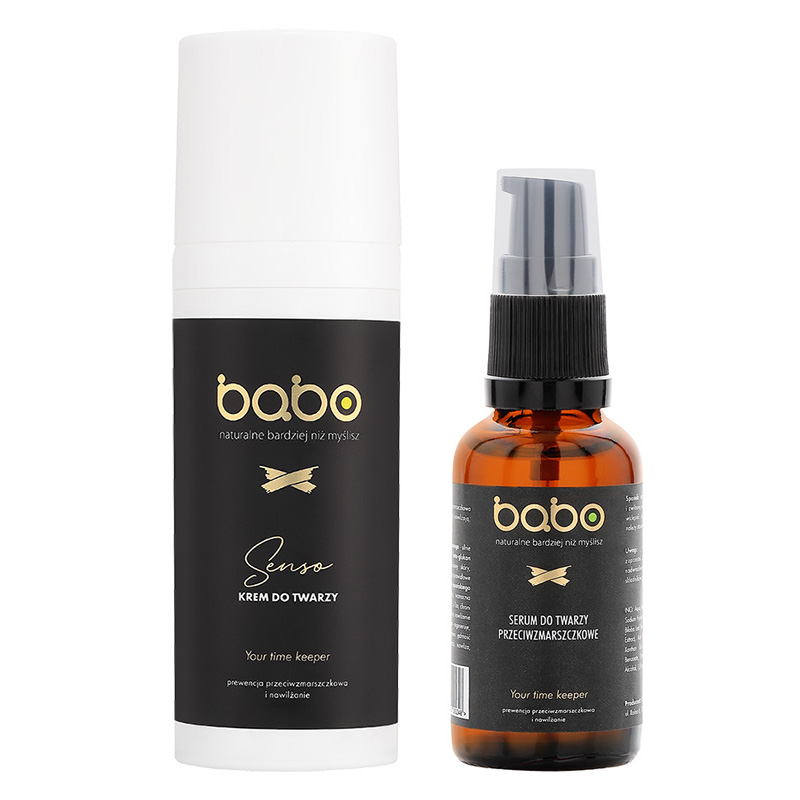 Babo to marka kosmetyków naturalnych o skutecznym działaniu. Głównym problemem, z którym walczą kosmetyki Babo jest przedwczesne starzenie skóry. Naturalne składniki o właściwościach przeciwzmarszczkowych pozwalają spowolnić proces starzenia i tym samym zapewnić skórze młody wygląd na dłużej. Roślinne ekstrakty stymulują skórę nadając jej naturalny blask oraz dbają o jej odpowiedni poziom nawilżenia. Stale poszerzająca się oferta kosmetyków Babo pozwala kompleksowo zadbać o skórę- od oczyszczania po dogłębne nawilżanie! Zamiłowanie do natury objawia się w marce Babo również dbaniem o środowisko. Opakowania kosmetyków tej marki tworzone są z ciemnego szkła, które dodatkowo chroni składniki aktywne przed utlenianiem.