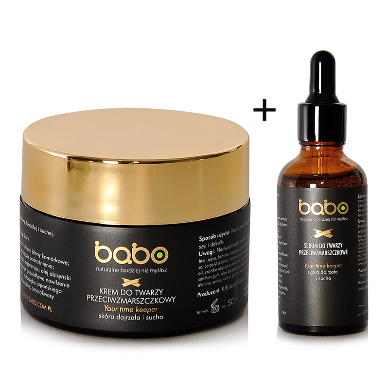 Krem Babo w swoim składzie zawiera również składniki naturalne o właściwościach chroniących młody wygląd skóry. Ekstrakt z miłorzębu japońskiego poprawia jędrność i elastyczność skóry oraz doskonale sprawdza się w pielęgnacji skóry naczyniowej- wzmacnia naczynia krwionośne i zapobiega ich pękaniu. Kompleks aminokwasów stymuluje produkcje kolagenu i elastyny, które są podstawą jędrności skóry. Drogocenny olej abisyński nawilża i wygładza skórę, jednocześnie redukując drobne zmarszczki.