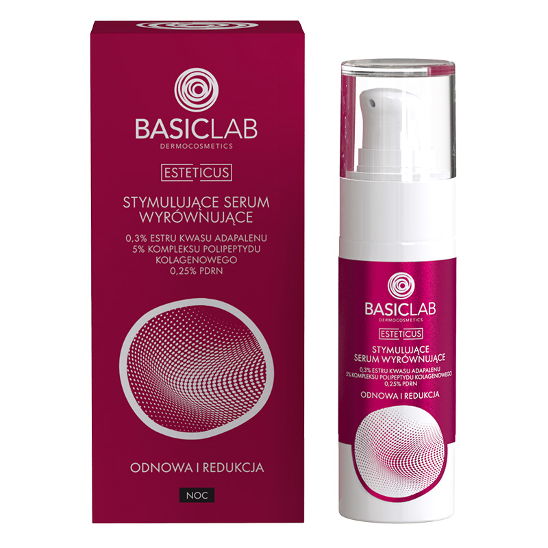 Serum z 0,3% estrem kwasu adapalenu (Adapinoid®) działa głęboko w skórze, stymulując syntezę kolagenu, złuszczanie naskórka i regulację sebum, co ogranicza zmiany trądzikowe i wyrównuje koloryt. Dodatek 0,25% czystego PDRN wykazuje silnie regenerujące i przeciwstarzeniowe działanie. Natychmiastowo napina skórę, stymuluje jej odnowę, działa antyoksydacyjnie i nawilżająco, łagodząc stany zapalne.