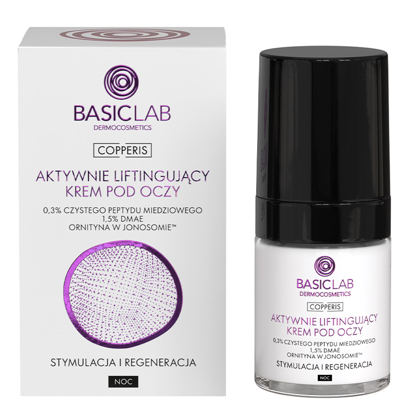 W formule produktu zastosowany został czysty peptyd miedziowy w stężeniu 0,3%, który pobudza produkcję kolagenu, elastyny oraz glikozaminoglikanów. Składnik ten przyspiesza procesy regeneracji, spłyca zmarszczki i wzmacnia barierę hydrolipidową. 1,5% DMAE zapewnia działanie przeciwstarzeniowe, widocznie ujędrnia oraz napina okolicę oka. Dodatkowo składnik ten zmniejsza ilość lipofuscyny - pigmentu będącego markerem starzenia się skóry na poziomie komórkowym.