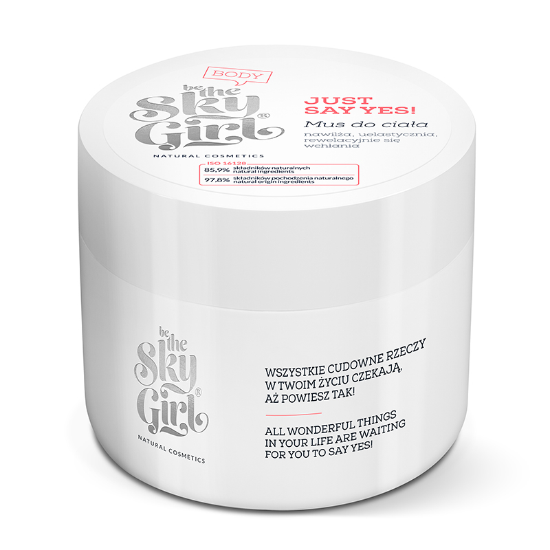 Just Say Yes - Mus do ciała 100 ml. Mus łączy w sobie wiele pielęgnacyjnych składników pochodzenia naturalnego, m.in. masła shea, masło mango, oleje babassu, ryżowy i chia. Idealne uzupełnienie pielęgnacji skóry po kąpieli, a także świetny produkt do masażu ciała. Z dodatkiem nuty jaśminu i czarnego opium mus działa nie tylko relaksująco ze względu na ciekawy i zmysłowy zapach, ale przede wszystkim intensywnie nawilża, delikatnie natłuszcza i uelastycznia skórę. Zawiera witaminy młodości (A, B, C, E, K) wspierające proces syntezy kolagenu. Kwas hialuronowy dodatkowo zapobiega utracie jędrności i również będzie działał odmładzająco. Rozświetlające drobinki dodają skórze blasku i subtelnego rozświetlenia.