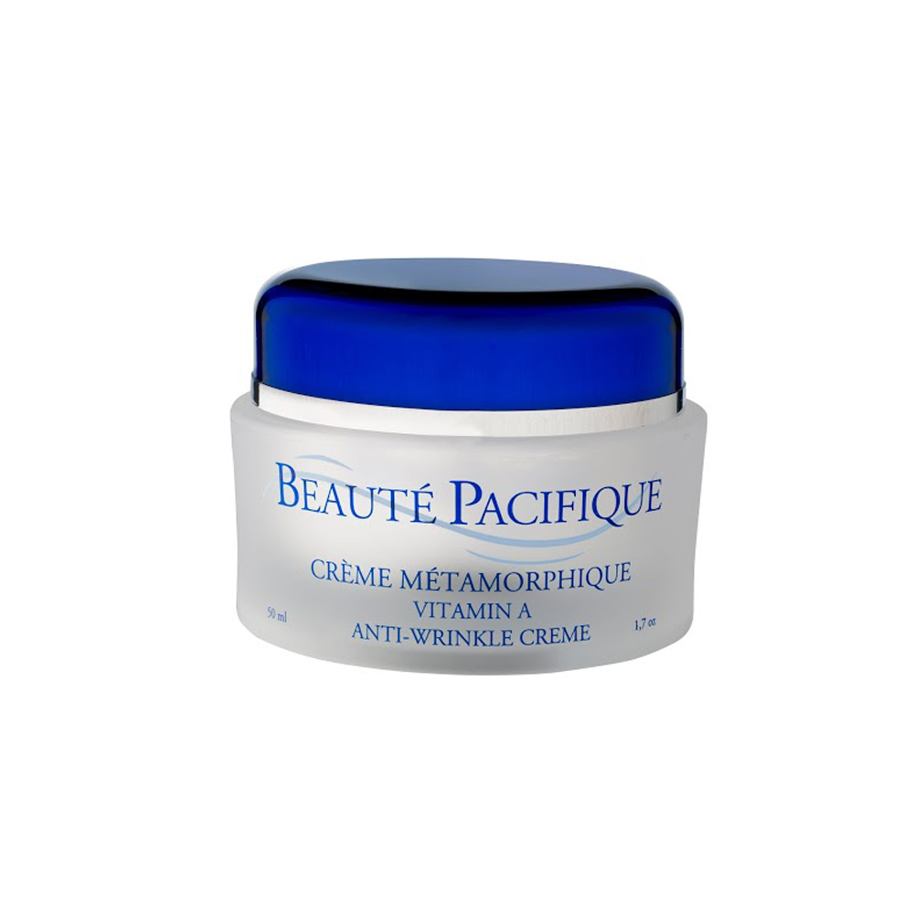 Metamorphique Vitamin A Anti-Wrinkle Cream krem przeciwzmarszczkowy. Rekomendowany dla osób z pierwszymi oznakami starzenia, chcących opóźnić ten proces. Szczególnie polecany po 25 r.ż. Produkt zwalcza również już istniejące efekty fotostarzenia - zmarszczki, utrata jędrności, przebarwienia, zmniejszona elastyczność. Głównym składnikiem aktywnym jest witamina A w dwóch formach - łącznie stężenie odpowiadające 0,3% czystego retinolu. Krem dzięki łagodniejszym formom witaminy A, nie powoduję tak odczuwalnych podrażnień oraz jest bezpieczniejszy w stosowaniu. Dzięki właściwością hamującym melanogenezę, rozjaśnia przebarwienia oraz wyrównuję koloryt cery. Posiada również właściwości antyrodnikowe, nie dopuszczając do degradacji komórkowej. Przy regularnym stosowaniu skóra ulega przebudowie, zwiększając grubość żywych warstw skóry.