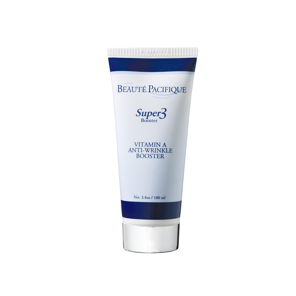 Super3 Booster Vitamin A Anti-Wrinkle Cream Booster - Krem 0,7% retinol. Aktywnie zwalcza zmarszczki oraz naprawia uszkodzenia spowodowane promieniowaniem UV. Skład oparty jest na trzech formach witaminy A, których działaniem jest odmładzanie i ujędrnianie skóry. Zwiększona zostaje synteza włókien kolagenowych i elastynowych, przez co skóra staje się wzmocniona i bardziej sprężysta. Redukuję również widoczność rozstępów i blizn. Krem idealnie sprawdzi się wszędzie tam, gdzie skóra jest cienka i transparentna, np. okolice dłoni. Po użyciu zmniejsza się również wydzielanie sebum, dzięki czemu skóra pozostaje matowa. Zanieczyszczenia znikają, a wypryski nie pojawiają się, dzięki zawartości propolisu. Polecany dla skóry z problemami trądzikowymi.
