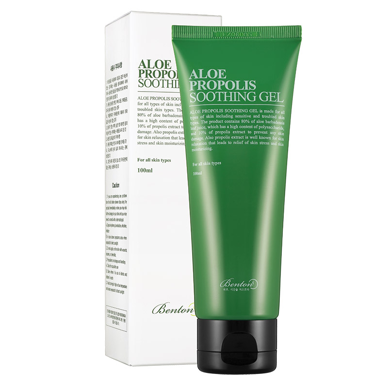 Aloe Propolis Soothing Gel - Żel nawilżająco-kojący, którego najważniejszymi składnikami są aloes i propolis. Wyciąg z aloesu stanowi 80% składu kosmetyku, jest bogatym źródłem składników mineralnych dzięki czemu żel wykazuje działanie łagodzące, nawilżające, odżywiające oraz regenerujące naskórek. Dzięki temu jest idealnym preparatem dla skóry podrażnionej, bardzo suchej i wrażliwej. Z kolei propolis znajdujący się w stężeniu 10% działa grzybobójczo, antywirusowo, przeciwbakteryjnie, dezynfekująco i regenerująco. Żel nawilżająco-kojąco łagodzi stany zapalne skóry i działa antyseptycznie. Formuła kosmetyku jest wzbogacona o wyciągi roślinne takie jak ekstrakt z owoców żółtodrzewu pieprzowego, który działa pobudzająco na skórę i łagodzi stany zapalne, ekstrakt z ogórka, który działa kojąco, odświeżająco i przeciwzmarszczkowo, ekstrakt z malwy różowej zmiękcza skórę i przywraca jej aksamitny wygląd. Z kolei ekstrakt z zielonej herbaty usuwający toksyny, działa antoksydacyjnie, przeciwbakteryjnie i delikatnie ściągająco, ekstrakt z rumianku pospolitego oraz alantoina łagodzą podrażnienia i przyspieszają regenerację skóry. Kosmetyk nadaje się do każdego typu cery, spełnia funkcje serum. Ze względu na swój bogaty skład i lekką, żelową konsystencję dodatkowo zapobiega nadmiernemu przetłuszczaniu się skóry.