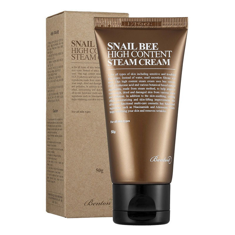 Snail Bee High Content Steam Cream - Lekki krem, wolny od oleju mineralnego,jest kremem silnie nawilżającym, który także odmładza skórę przez jej ujędrnienie i wygładzenie. Efekt ten zapewnia bogactwo składników naturalnych zawartych w kosmetyku. Filtrat ze śluzu ślimaka regeneruje i odbudowuje uszkodzoną skórę, więc zmniejsza widoczność zmarszczek, napina skórę, uelastycznia ją, wygładza drobne blizny oraz stymuluje skórę łagodząc zaczerwienienia oraz zmniejszając zmiany trądzikowe. Jad pszczeli działając jak naturalny botoks powoduje ujędrnienie skóry, spłycenie i wygładzenie zmarszczek, ponadto pobudza krążenie krwi i zwiększa nawilżenie skóry oraz zwiększa produkcję elastyny i kolagenu. Odczuwalnym efektem działania jadu pszczelego jest mrowienie skóry, które po krótkiej chwili znika, widać wyraźną poprawę napięcia oraz rozświetlenia cery. Aktywatory wzrostu EFG pobudzają wzrost nowych komórek naskórka, skóra staje się bardziej sprężysta i wygląda na młodszą, zmarszczki mimiczne ulegają spłyceniu. Składnik ten przyspiesza regenerację podrażnień, odżywia i nawilża skórę. Kwas hialuronowy przez intensywne nawilżanie skóry powoduje wypełnienie zmarszczek, poprawia napięcie i elastyczność. Zaletą kremu jest jego formuła oparta w głównej mierze na naturalnych składnikach.