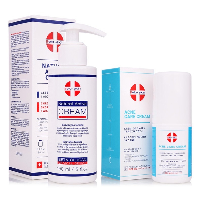 Marka Beta Skin posiada w swojej ofercie dermokosmetyki odpowiadające na potrzeby skóry suchej, podrażnionej, reaktywnej i zaczerwienionej, czyli takiej, która wymaga szczególnej troski i regeneracji. Składy zostały oparte na działaniu beta glukanu i srebra koloidalnego, dzięki czemu znajdują zastosowanie w terapii takich dermatoz jak AZS, łuszczyca, ŁZS, wypryski kontaktowe i egzemy. Formuły chronią także skórę przed negatywnym działaniem czynników zewnętrznych, na przykład silnego wiatru, mrozu czy detergentów. Przy regularnym stosowaniu produkty marki Beta Skin poprawiają komfort i wspomagają procesy odbudowy płaszcza hydrolipidowego.