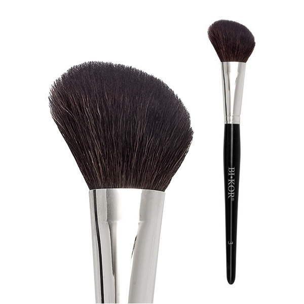 Bikor Pro Brush N°3 - Pędzel do bronzera, różu i rozświetlacza. Profesjonalnie wyprofilowany pędzel, podkreśli kontury twarzy i ułatwi aplikację kosmetyku. Dzięki odpowiedniemu doborowi włókien włosów uzyskanie naturalnego efektu nie sprawi większego problemu. Pędzel ten jest rekomendowany przez topowych makijażystów. Kształt pędzla pozwoli na niezwykle precyzyjne nałożenie bronzera, różu i rozświetlacza.