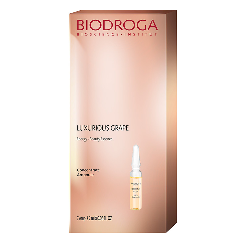 Luxurious Grape Energy Beauty Essence Concentrate - Koncentrat winogronowy. Silnie energetyzujący koncentrat to doskonały produkt do pielęgnacji skóry zmęczonej, poszarzałej. Dzięki połączeniu składników o właściwościach przeciwzmarszczkowych zmniejsza widoczność zmarszczek oraz pozwala zachować jędrność skóry. Zawarty w składzie kwas hialuronowy nie tylko gwarantuje odpowiednie nawilżenie skóry, ale również pozwala wypełnić zmarszczki od środka. Nowoczesne peptydy zmniejszają widoczność zmarszczek mimicznych oraz pozwalają zachować młody wygląd skóry. Ampułki stanowią kompleksową kuracje przeciwzmarszczkową, której efektem jest gładka, promienna skóra.