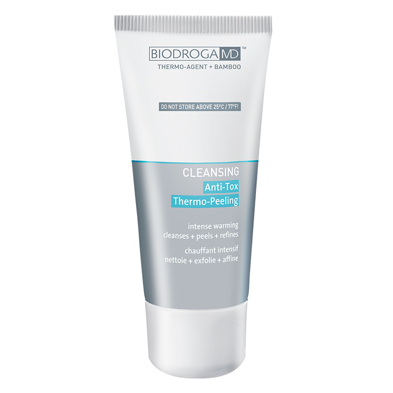 Anti-Tox Thermo Peeling - Głęboko oczyszczający piling 50 ml. Peeling dzięki połączeniu składników odtruwających i rozgrzewających pomaga skórze oczyścić się i pozbyć szkodliwych toksyn. Thermo-Agent to syntetycznie wytworzona substancja, która aktywując receptory ciepła skóry, powoduje jej intensywne rozgrzanie. Po nałożeniu preparatu otwierają się pory i następuje zwiększenie tempa wchłaniania w skórę składników. Mikrokrążenie jest zwiększane przez „Efekt Thermo”, umożliwiając efektywny transport tlenu i pożywienia do komórek. Zawarty w preparacie bambus oczyszcza skórę, delikatnie usuwając zanieczyszczenia z powierzchni skóry, a nawet te głębiej osadzone (do głębokości porów). Peeling poprawia teksturę skóry, zmniejsza widoczność linii i zmarszczek.