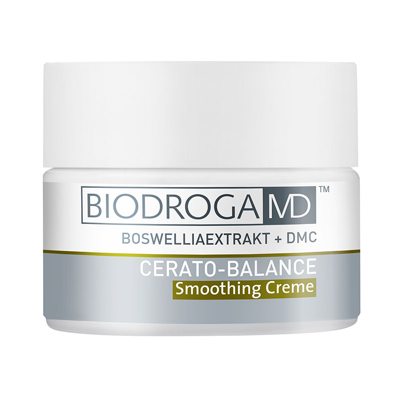 Cerato Balance Smoothing Creme - Krem wygładzający. Krem przeznaczy dla osób z problemami rogowacenia mieszkowego, zapaleń okołomieszkowych oraz szorstkości skóry. Przyczyną tych schorzeń jest nadmierne rogowacenie skóry, które prowadzi do powstawania czopów rogowych. Rogowacenia mają różne podłoże, mogą być nabyte lub wrodzone. Przyczyną nabytego rogowacenia jest zazwyczaj działanie promieniowania UV lub nadmierne przesuszenie skóry. Krem skutecznie i szybko zwalcza objawy nadmiernego rogowacenia skóry, dzięki czemu staje się ona gładka i miękka w dotyku. Głównymi składnikami aktywnymi są: ekstrakt z Boswelli, mocznik i Membrane Complex. Wspomagają hamowanie procesów zapalnych, nawilżają skórę oraz zwiększają wchłanianie substancji aktywnych w głąb skóry.