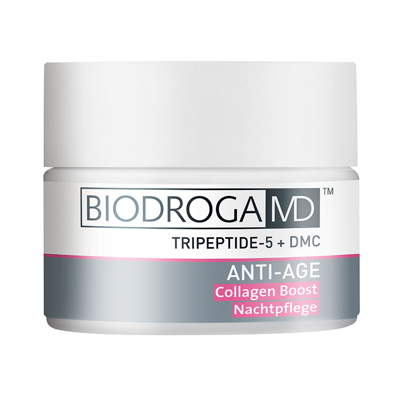 Collagen Boost Night - Krem na noc. Krem o działaniu silnie regeneracyjnym oraz naprawczym. Działanie składników aktywnych odbywa się w nocy, w celu osiągnięcia lepszych efektów odmładzających. Po nocy skóra jest wypoczęta, promienna i wygładzona. Fitostymulatory oraz wysokoefektywne trójpeptydy odżywiają skórę szybko i efektywnie. Antyoksydanty zawarte w kremie neutralizują wolne rodniki, które przyczyniają się do szybszego starzenia skóry. Dodatkowo witamina C stymuluje produkcję kolagenu, a witamina A spłyca zmarszczki. Skóra staje się napięta i zliftingowana. Derma Membrane Complex zwiększa wchłanianie składników aktywnych w głąb skóry.