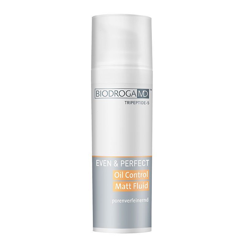Oil Control Matt Fluid - Fluid regulujący wydzielanie sebum. Produkt przeznaczony dla osób z problemami nadprodukcji sebum. Już po pierwszym użyciu skóra staje się matowa, gładka i elastyczna. Dzięki składnikom regulującym wydzielanie łoju ( Sebum Balancer, Pochłaniacz oleju, kukurydza skrobia), fluid matuje skórę bez efektu odwodnienia. Działanie kojące i łagodzące zapewniają mikroelementy i minerały zawarte w produkcie. Skóra po użyciu zostaje odpowiednio nawilżona i odświeżona. Tripetydy stymulują syntezę kolagenu, dzięki czemu skóra jest bardziej ujędrniona i napięta.