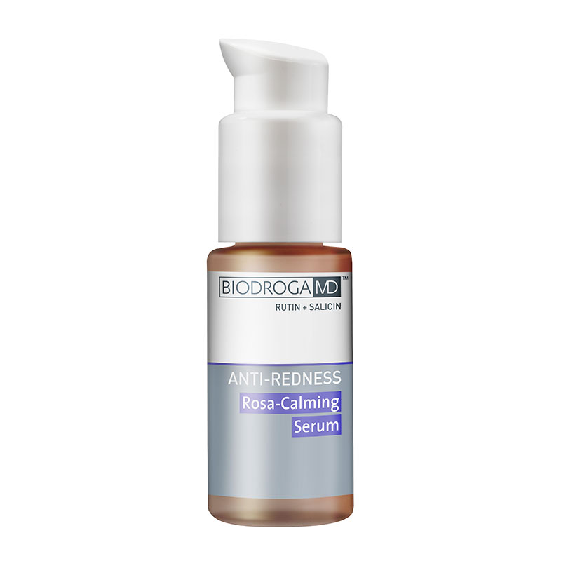 Rosa-Calming Serum - Serum dla skóry naczyniowej. Produkt do stosowania miejscowego, wzmacniający naczynia krwionośne oraz małe naczynka włosowate. Regularne stosowanie koncentratu zmniejsza zaczerwienienia oraz uspokaja zaognione miejsca. Składniki aktywne zostały specjalnie dobrane, aby zapobiegać podrażnieniom skórnym oraz koić zmiany zapalne. Kwercetyna i rutyna chronią skórę przed działaniem wolnych rodników oraz zgubnym promieniowaniem UV, opóźniając starzenie się skóry. Wzmacniają również naczynia krwionośne. TelangynTM, to tetrapeptyd stosowany w przypadkach teleangiektazji oraz couperosy, który równocześnie zwiększa jędrność i elastyczność skóry oraz zwalcza przebarwienia.