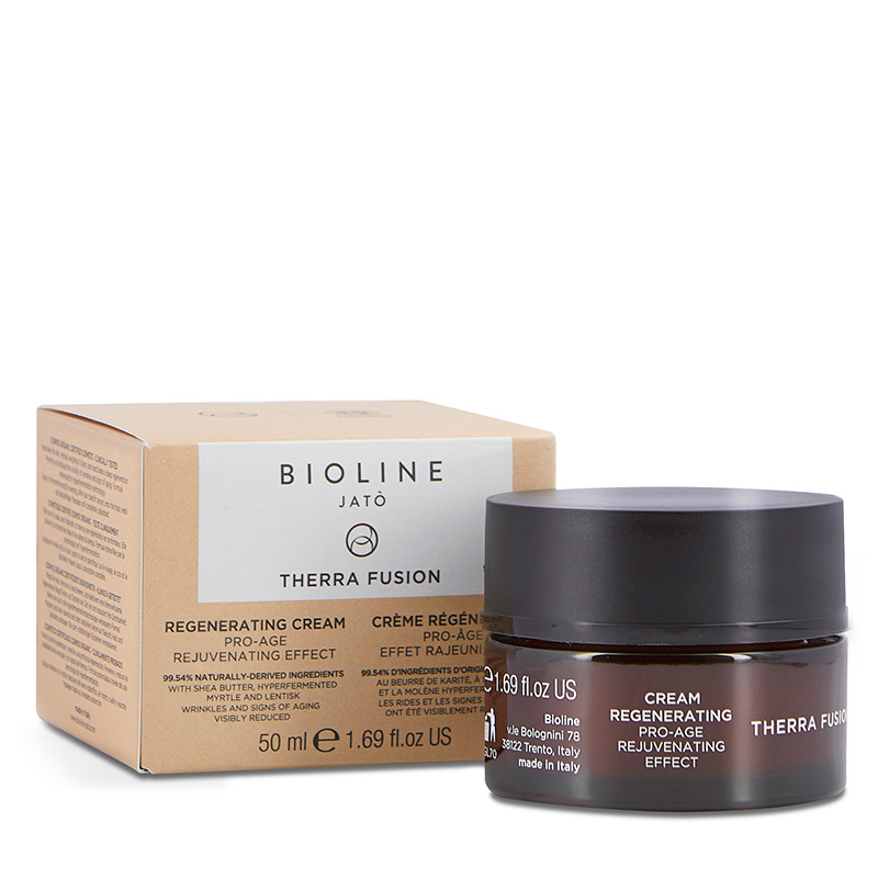 Formuła kremu został wzbogacona o składniki uzyskane w technologii hiperfermentacji - hiperfermentowany wyciąg z mirtu oraz pistacji kleistej. Ponadto dzięki zawartości masła Shea, krem doskonale nawilża i wygładza skórę. Przy regularnym stosowaniu Regenerating Cream Pro Age Rejuvenating Effect skóra staje się miękka i elastyczna.