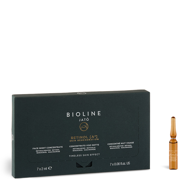 Składowa Bioline Jato Retinol Face Night Concentrate Serum w ampułkach występuje w zestawie Time To Regenerating w zmienionej objętości.