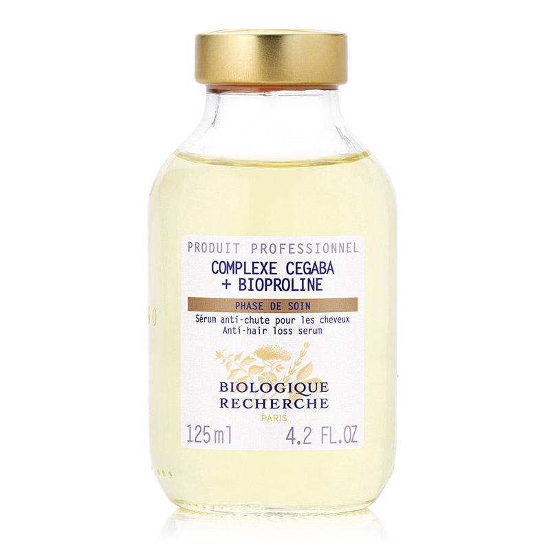 Complexe Cegaba + Bioproline - Lecznicze serum energetyzujące do włosów osłabionych. Produkt wzmacniający do włosów skłonnych do wypadania oraz osłabionych nadmierną stylizacją. Serum wzmacnia cebulki włosa, co bezpośrednio przekłada się na zwiększony wzrost włosa oraz poprawę jego kondycji. Skład preparatu znacząco wydłuża cykl życia włosa, co skutkuje zwiększoną liczbą włosów oraz ich szybszym odrastaniem. Skóra głowy staje się nawilżona, złagodzona oraz chroniona przed stanami zapalnymi oraz infekcjami. Idealnie sprawdzi się w przypadku osób z problemami łysienia androgenowego lub polekowego oraz dla kobiet po porodzie, które mają problem z nadmiernym wypadaniem włosów. Serum przeznaczone również dla osób chcących zagęścić i wzmocnić włosy. W składzie znajdziemy CEGABA (kwas karboksyetylo-gamma-aminomasłowy), acetyl tetrapeptide-3, które pobudzają wzrost włosa.
