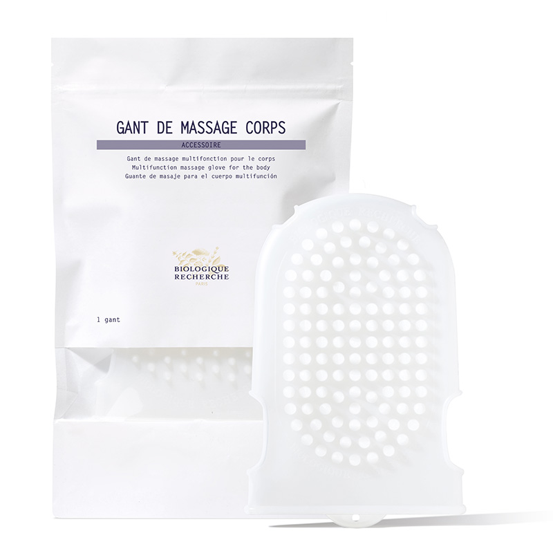 Silikonowa rękawica rekomendowana do pielęgnacji ciała. Na każdej ze stron posiada kolce, które umożliwiają przeprowadzanie stymulującego masażu. Zastosowana w połączeniu z kosmetykami Biologique Recherche wspomaga ich działanie oraz bardzo intensywnie pobudza skórę.