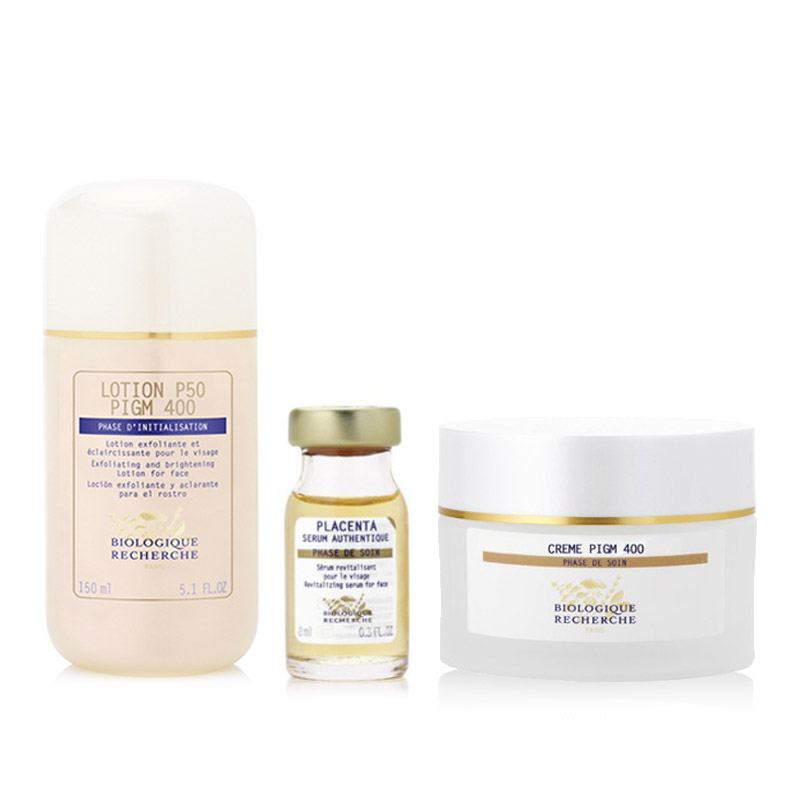 Składowa Biologique Recherche Placenta Serum rewitalizujące i odnawiające występuje w zestawie Skóra z przebarwieniami w zmienionej objętości.
