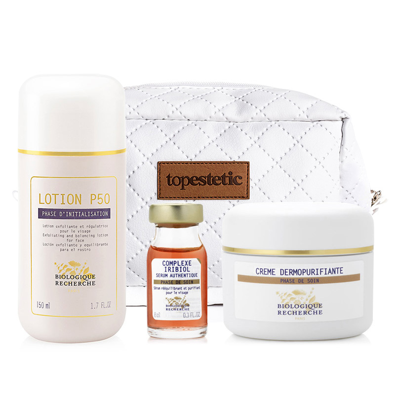 Zestaw Przeciwtrądzikowy ZESTAW Lotion P50 + Complex Iribiol + Creme Dermopurifiante + kosmetyczka. Zestaw dedykowany jest dla skór trądzikowych, tłustych i mieszanych. Preparaty zawarte w zestawie intensywnie wnikają w najgłębsze warstwy skóry, powodując pełną regenerację i odżywienie.