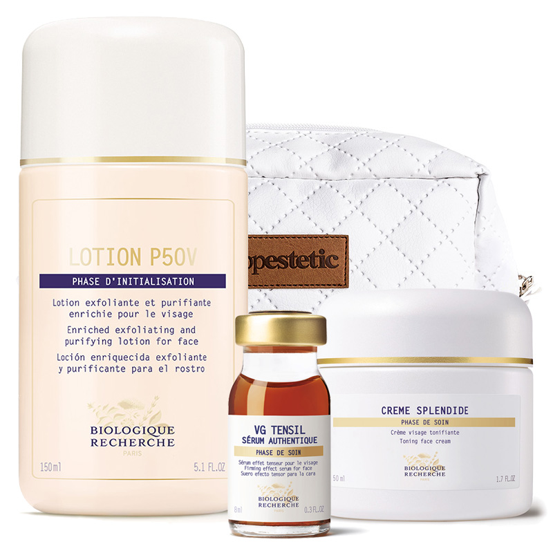 Zestaw Ujędrniający ZESTAW - Lotion P50V 150 ml + Serum VG Tensil + Creme Splendide + kosmetyczka. Zestaw 3 kosmetyków mieszczący się w eleganckiej kosmetyczce zachwyci niejedną dojrzałą skórę, która potrzebuje napięcia i ujędrnienia. Lotion, którym poprzedzamy aplikację serum i kremu jest obowiązkowy w całej pielęgnacji opartej na marce Biologique Recherche. Musi on więc znaleźć się w każdym zestawie porannej i wieczornej pielęgnacji. Serum nada skórze niemal natychmiastowy wzrost napięcia, a krem dodatkowo zapewni skórze ochronę i nawilżenie.
