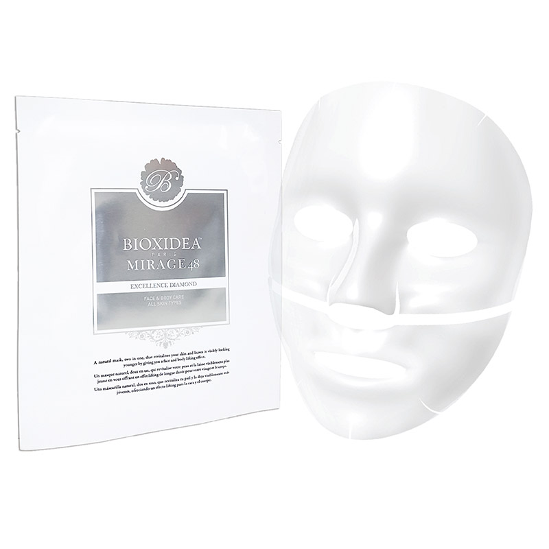 Technologia Bioxidea Mirage 48. Innowacja pozwalająca na podwójne działanie. Po zastosowaniu na twarz, maska może być dodana do kąpieli, w której ulegnie rozpuszczeniu tworząc multi-aktywne serum do ciała. Płat, który tworzy zbudowany jest z silnego kompleksu wysoce skutecznych, naturalnych ekstraktów bogatych w przeciwutleniacze, witaminy i minerały.