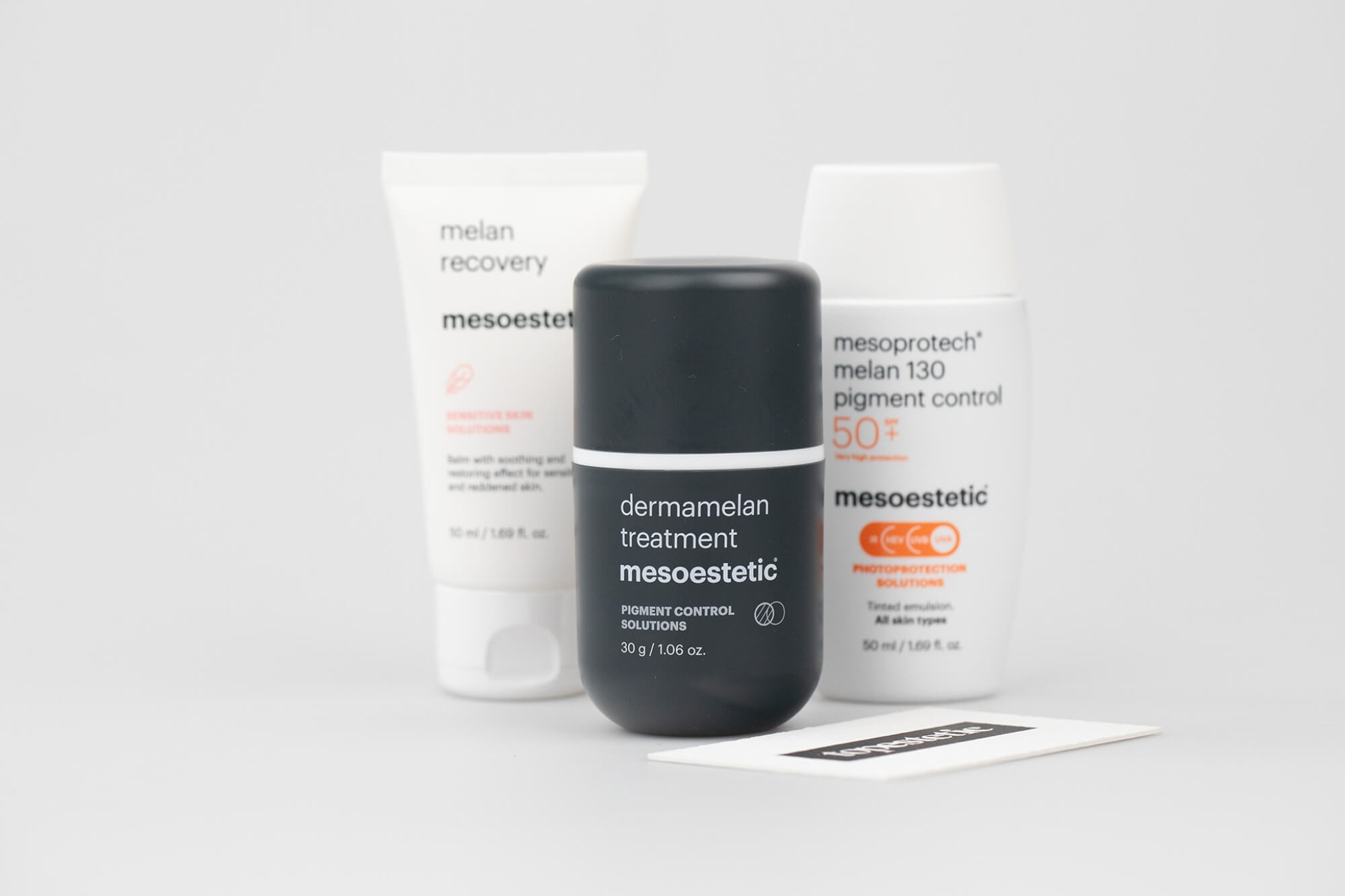 Sercem zestawów do pielęgnacji domowej są oczywiście kremy Cosmelan 2 New i Dermamelan Treatment. Każdy z setów zawiera jednak dodatkowe kosmetyki niezbędne w czasie kuracji — w postaci kremu regenerującego i fluidu fotoochronnego. Przy zakupie Home Pack od Mesoestetic otrzymujemy zatem trzy preparaty stanowiące kompletną, a co najważniejsze — komplementarną, bo działającą synergicznie — domową pielęgnację depigmentującą.